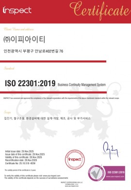 ISO22301 업무연속성경영시스템(BCMS)인증서