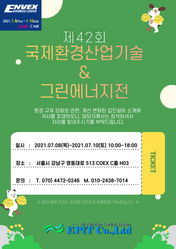 (주)EPiT가 ENVEX 2021 제42회 국제환경산업기술 & 그린에너지전에 초대합니다. [2021년 7월 8일(목) ~ 7… 작성일21-07-02