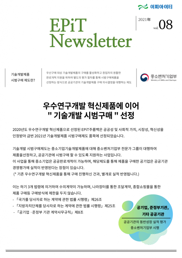 (주)EPiT 뉴스레터_8월호 [기술개발 시범구매]
