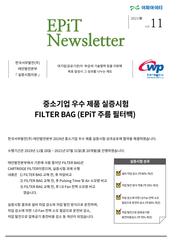 (주)EPiT 뉴스레터_11월호 [중소기업 우수 제품 실증시험]
